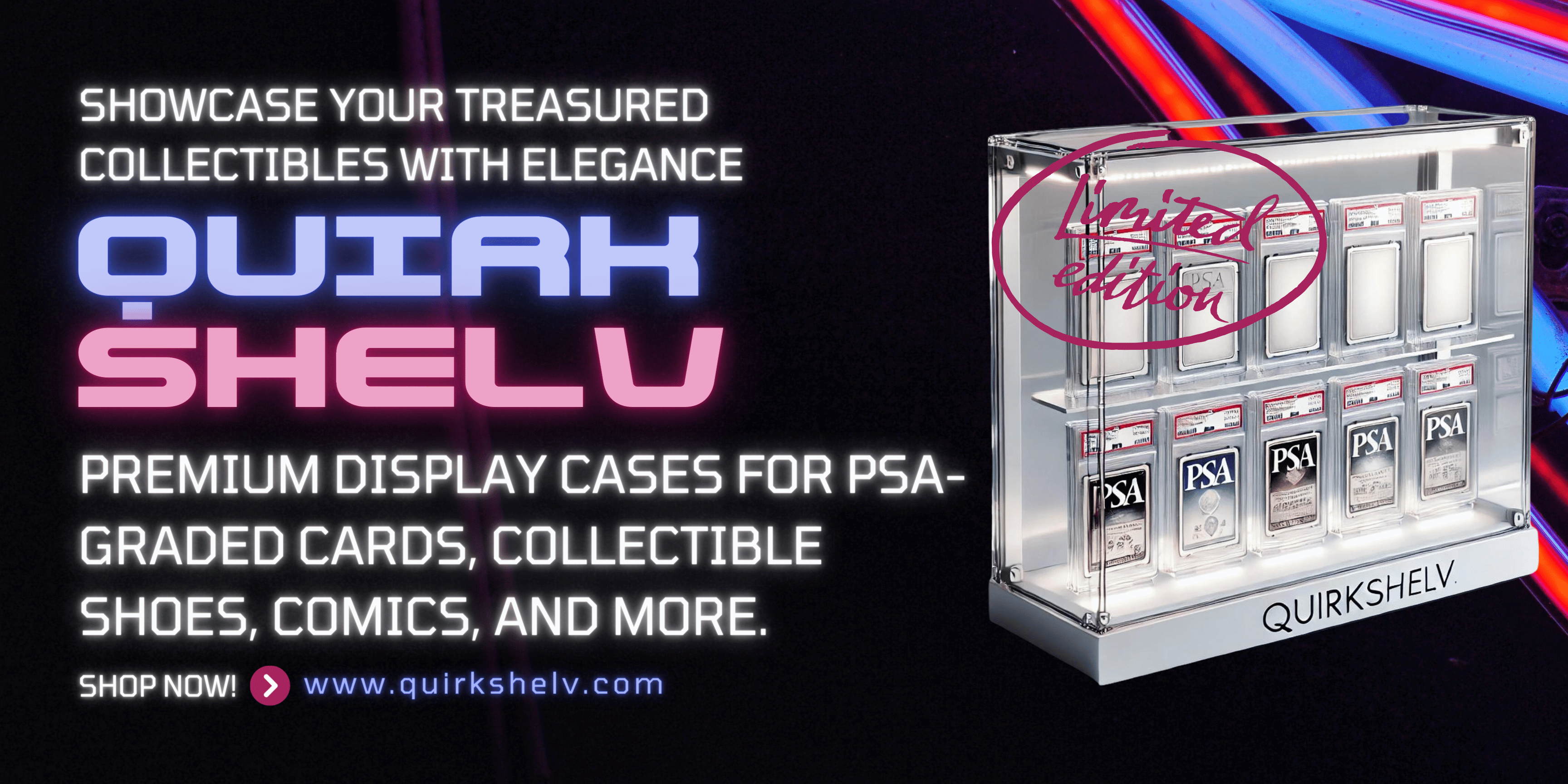 At QuirkShelv, we specialize in crafting high-quality display cases for your most prized collectibles. Our cases are designed to offer UV protection and feature elegant lighting that enhances the beauty of your items without causing any damage. With a variety of custom-fit options, our cases are perfect for PSA-graded cards, collectible shoes, raw cards, and more.