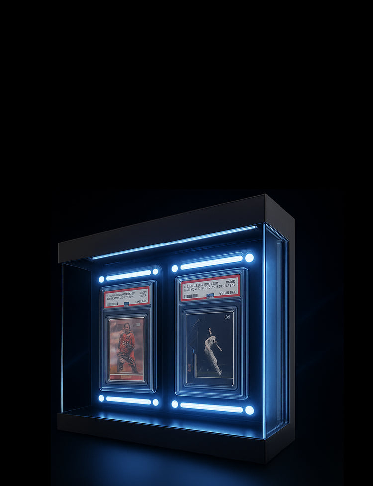 At QuirkShelv, we specialize in crafting high-quality display cases for your most prized collectibles. Our cases are designed to offer UV protection and feature elegant lighting that enhances the beauty of your items without causing any damage. With a variety of custom-fit options, our cases are perfect for PSA-graded cards, collectible shoes, raw cards, and more.